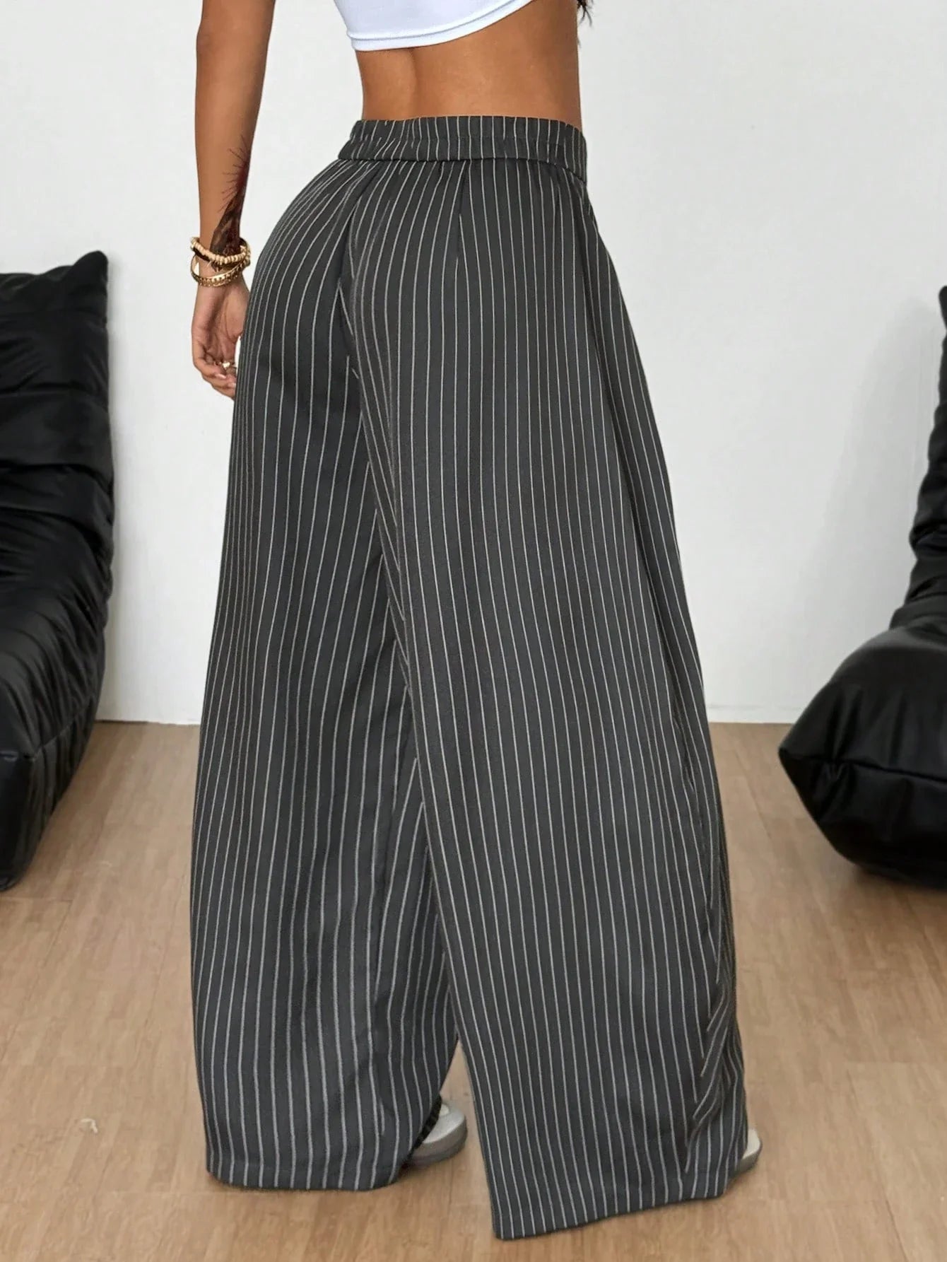 The Alexandra striped pants combine modern tailoring with effortless sophistication. Featuring a wide-leg fit and a distinctive fold-over tie waist, they create a flattering silhouette that blends comfort with contemporary style. Perfect for both casual outings and elevated looks, these trousers are a versatile wardrobe essential.